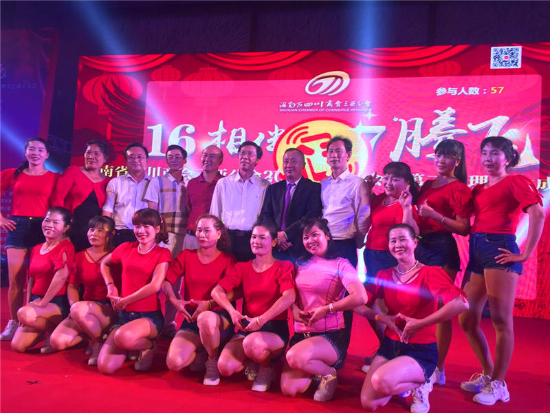 公司領(lǐng)導(dǎo)與年會(huì)演出員工合影