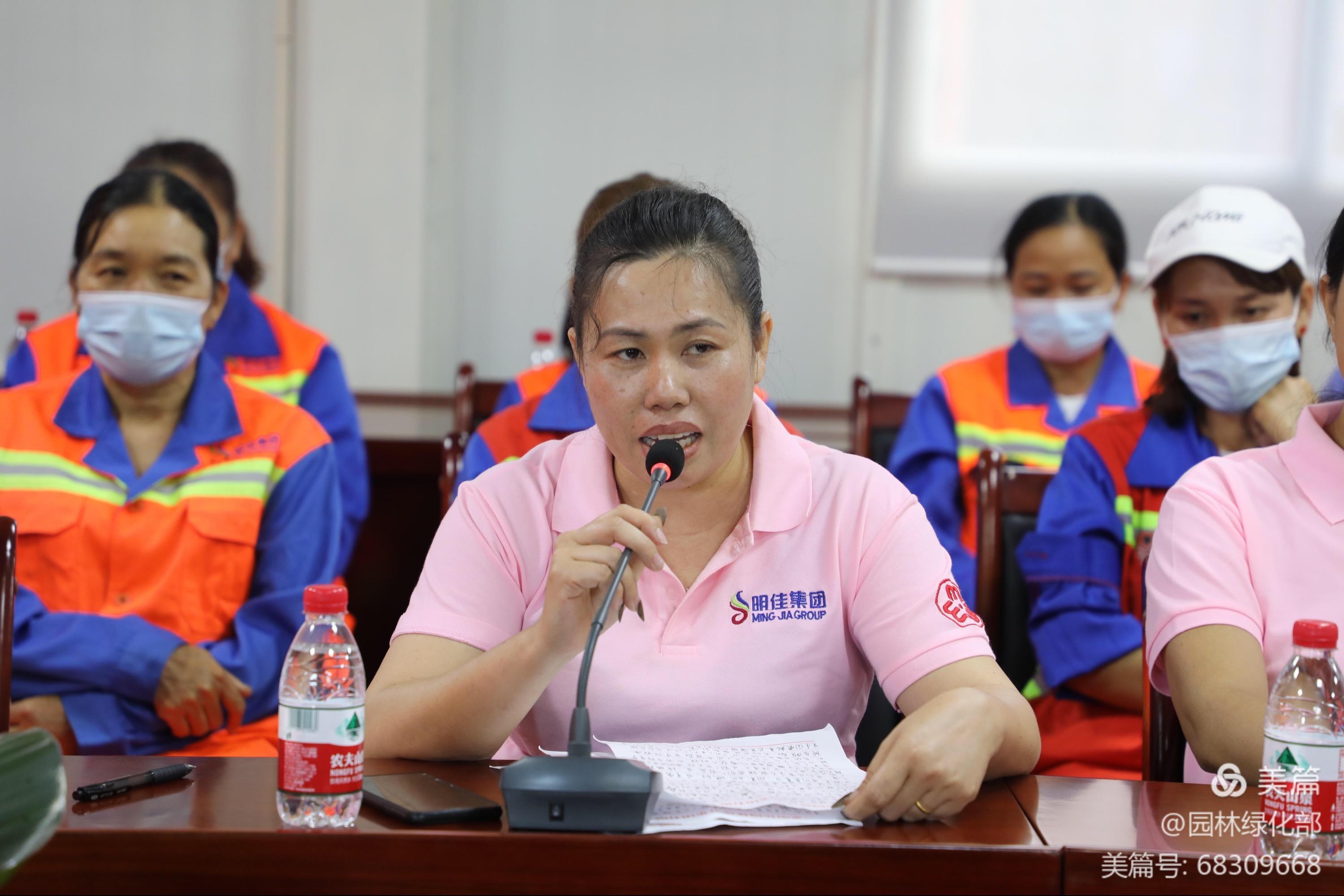吉陽(yáng)區(qū)婦聯(lián)蒲愛(ài)蓉主席、明佳婦聯(lián)熊牡丹主席及張煒珍副主席同女職工親切交談