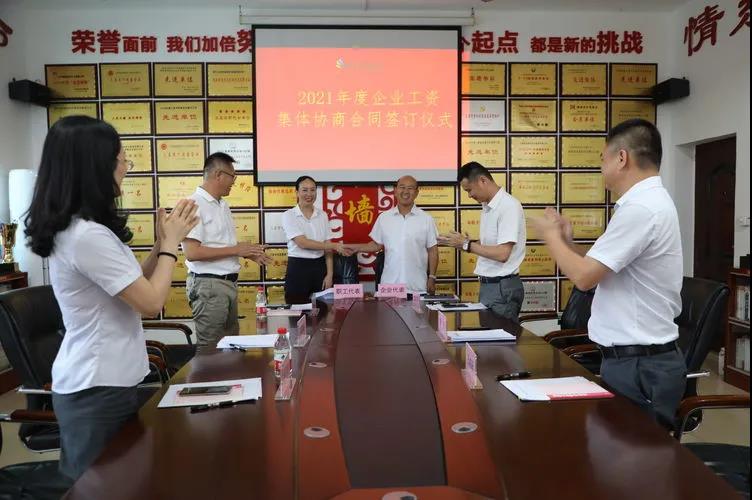 7月15日,《企業(yè)工資專項(xiàng)集體合同》簽訂儀式順利舉行。公司總裁陳云、工會主席高斐斐等6名協(xié)商代表參加了本次簽訂儀式。陳云表示,公司工會在開展此次集體協(xié)商過程中,能夠以企業(yè)職工的意愿和需求為出發(fā)點(diǎn),以切實(shí)維護(hù)職工權(quán)益為目標(biāo),積極引導(dǎo)職工做企業(yè)發(fā)展的主人,不僅為企業(yè)和職工協(xié)商共謀搭建了平臺,還為企業(yè)注入了活力和生機(jī),實(shí)現(xiàn)了企業(yè)和職工雙方的共贏。