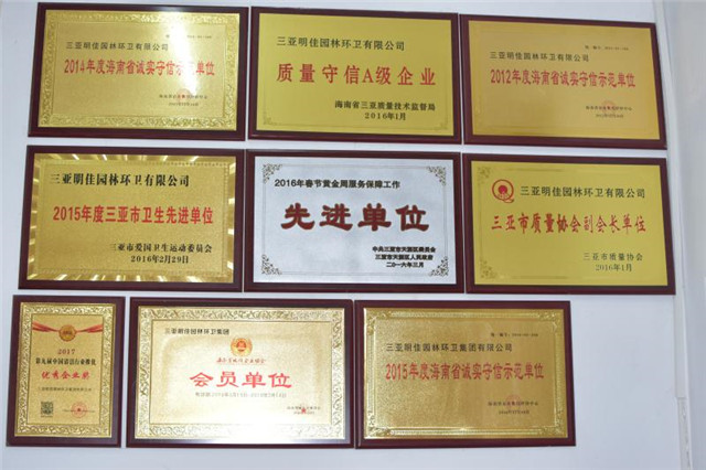 目前母公司連續(xù)五年被海南省企業(yè)信用評定中心評定為信用AAA等級單位,并榮獲中國清潔清洗行業(yè)國家一級資質(zhì)、城市環(huán)境衛(wèi)生經(jīng)營服務(wù)A級資質(zhì)、城市園林綠化三級資質(zhì),被中國清潔行業(yè)推選為國家三星級企業(yè)、十佳清潔服務(wù)企業(yè)、杰出貢獻(xiàn)企業(yè),并榮獲2016年中國清潔行業(yè)百強(qiáng)品牌,成為中國清潔行業(yè)常務(wù)理事單位、中國衛(wèi)生有害生物防制協(xié)會會員單位、中國城市環(huán)境衛(wèi)生協(xié)會會員單位、海南省衛(wèi)生協(xié)會理事單位、三亞市環(huán)境保護(hù)協(xié)會副會長單位,公司先后多次獲得國家、省、市獎勵和表彰40余次,成功在海南省股權(quán)交易中心掛牌,代碼:90777,并積極籌劃在新三板上市,已真正成為海南省環(huán)衛(wèi)行業(yè)的龍頭企業(yè)。