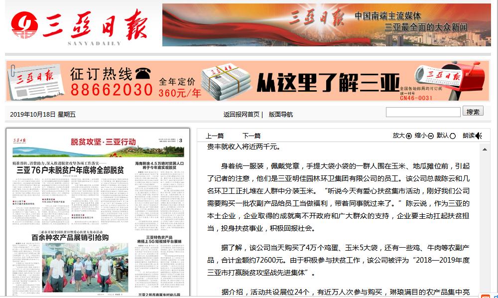 明佳集團作為三亞的本土企業(yè),主動扛起扶貧擔當,投身扶貧事業(yè),積極回報社會。在此次大采購活動中,集團員工在總裁陳云的帶領下,購買了4萬個雞蛋、玉米5大袋,還有一些雞、牛肉等農(nóng)副產(chǎn)品,合計金額約72600元。三亞日報和三亞新聞聯(lián)播分別對明佳集團的愛心大采購活動進行了報道。
